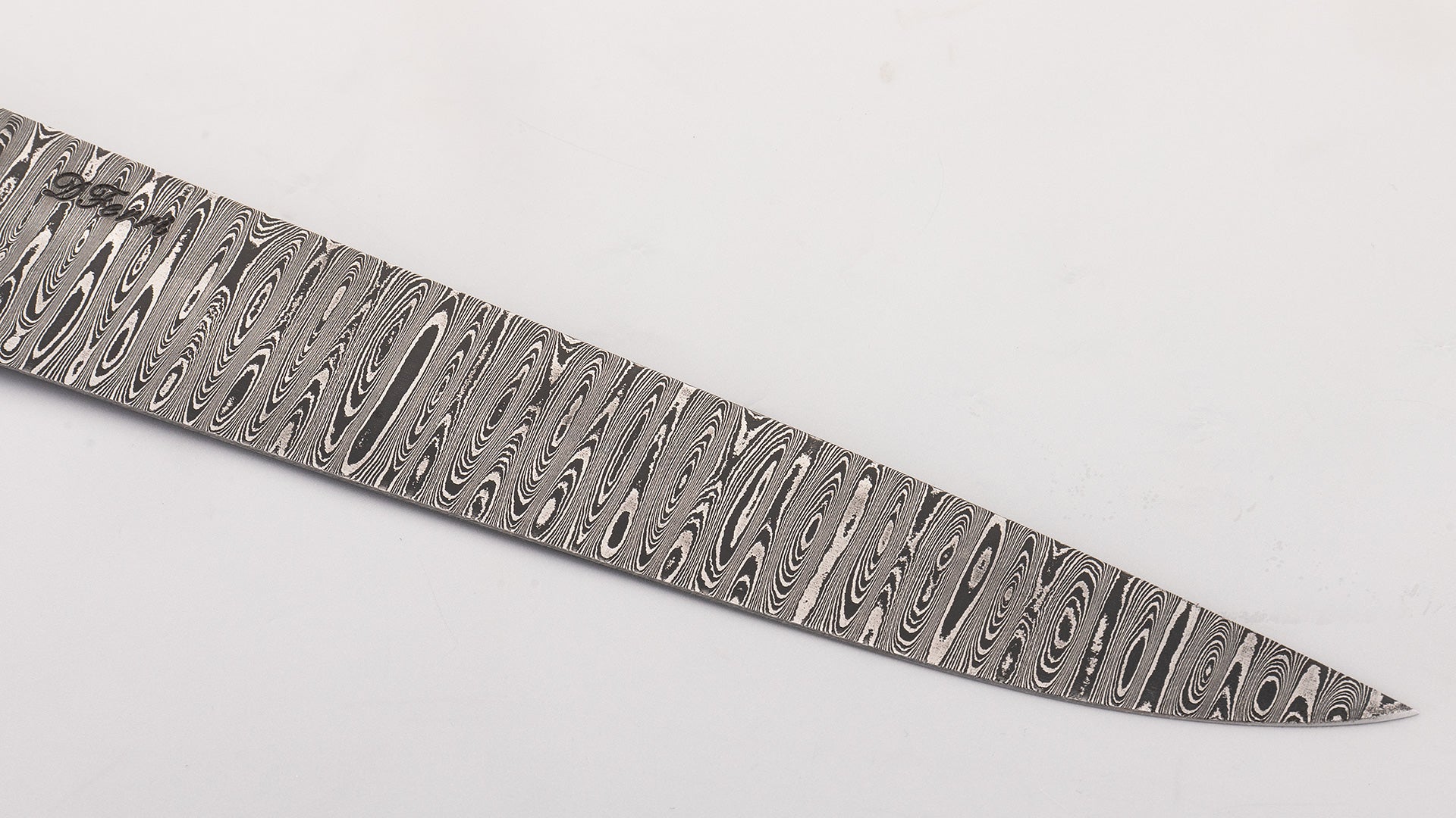 - Ladder Pattern Legacy: A hand-forged ladder pattern Damascus blade reveals the maker's mastery of steel. This timeless pattern shimmers with depth and complexity.
